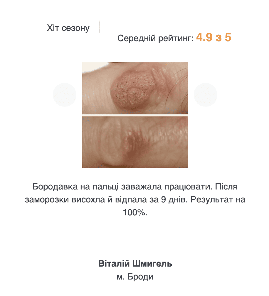Здорова шкіра навколо не пошкоджується — холод діє лише на проблемну зону.