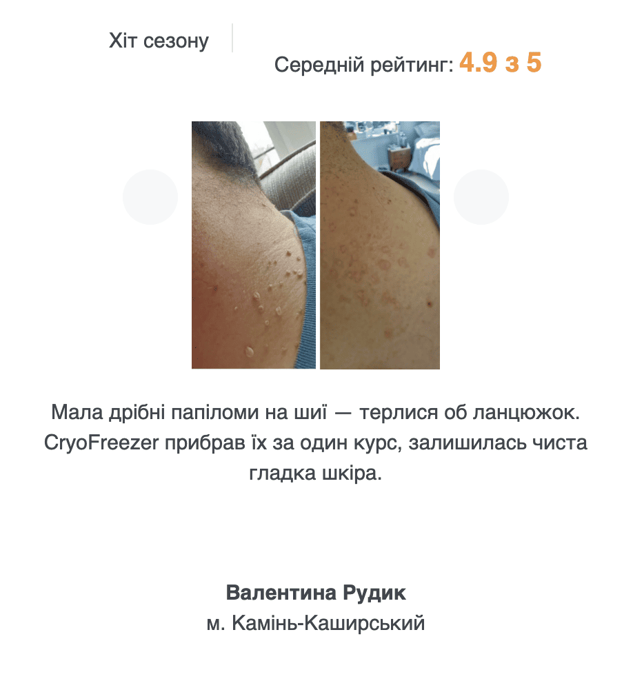 Останнє замовлення: 40 хв томуCryoFreezer — холодне видалення папілом і бородавок