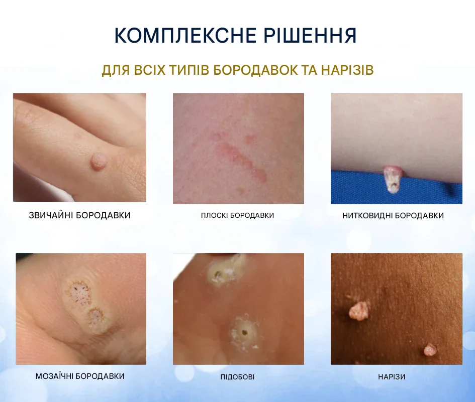 • бородавок на руках, пальцях, стопах