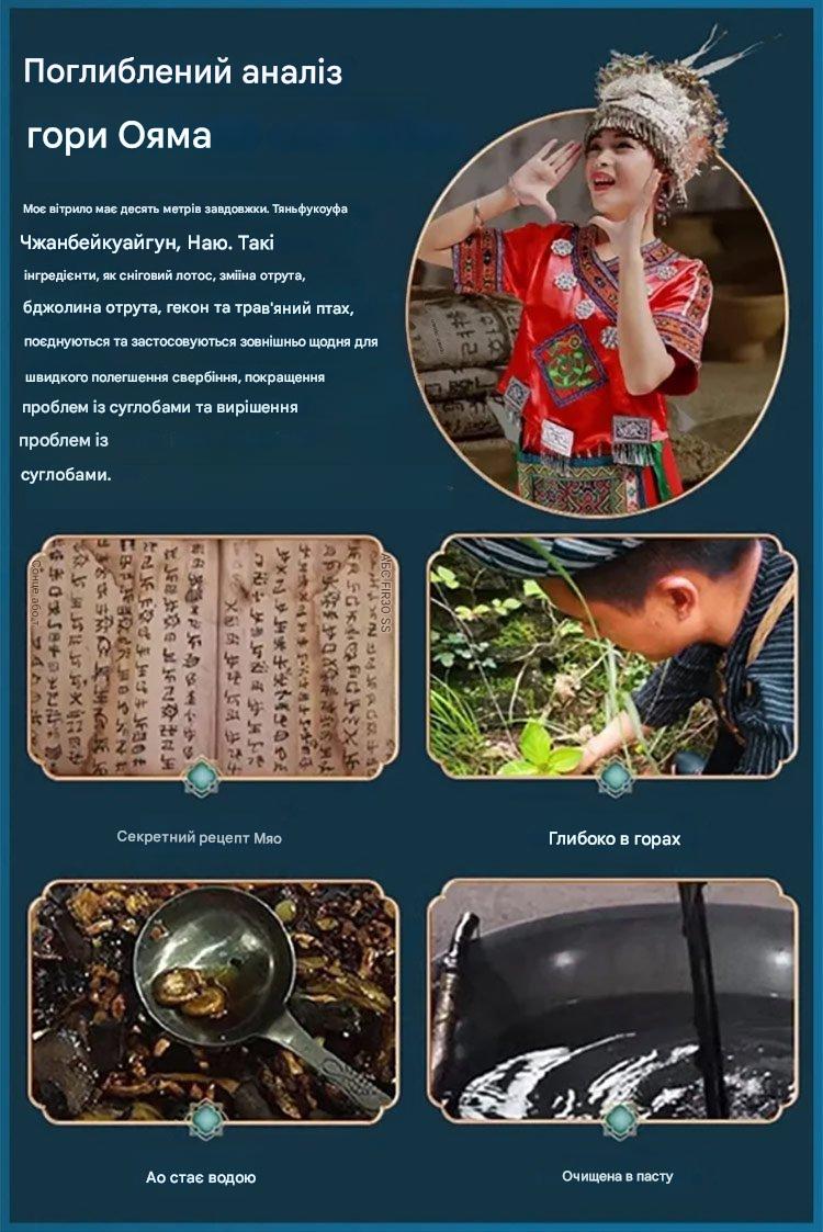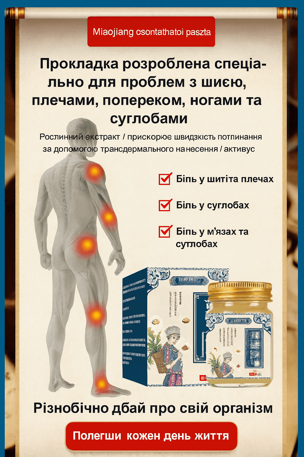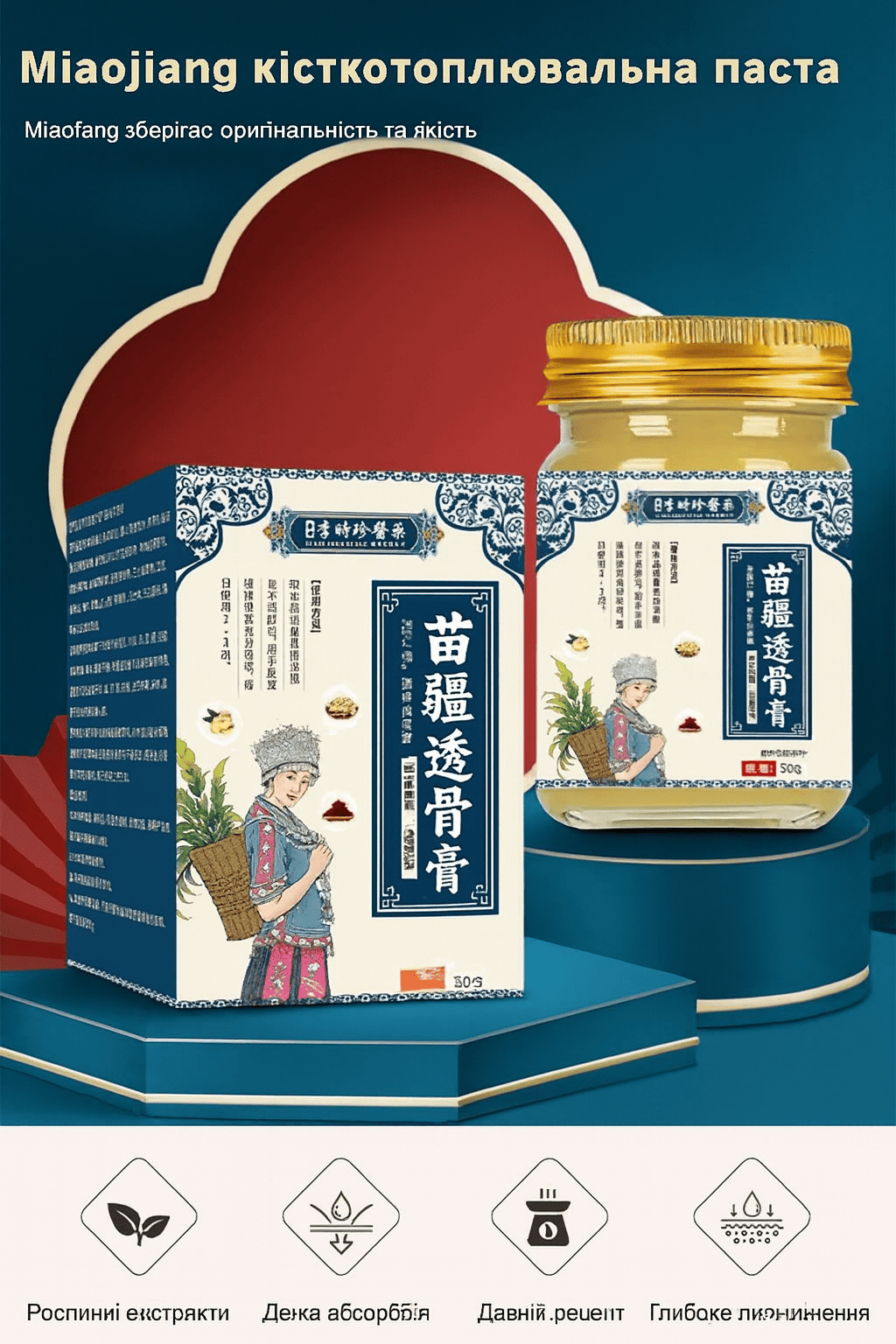 Бальзам Miaojiang — це сучасний засіб, створений на основі давніх рецептів китайської медицини. Його склад містить екстракти рослин, що мають природні знеболювальні, протизапальні та зігріваючі властивості. При нанесенні на шкіру бальзам швидко проникає в глибокі шари тканин, зменшуючи біль, набряк і запалення.