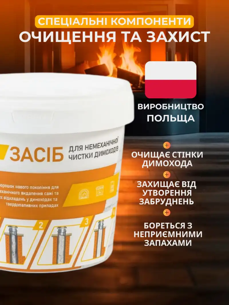 Під час нагрівання засіб активується, перетворюючи сажу на сипкий попіл. Він не просто чистить, а розчиняє небезпечні відкладення навіть у важкодоступних місцях.