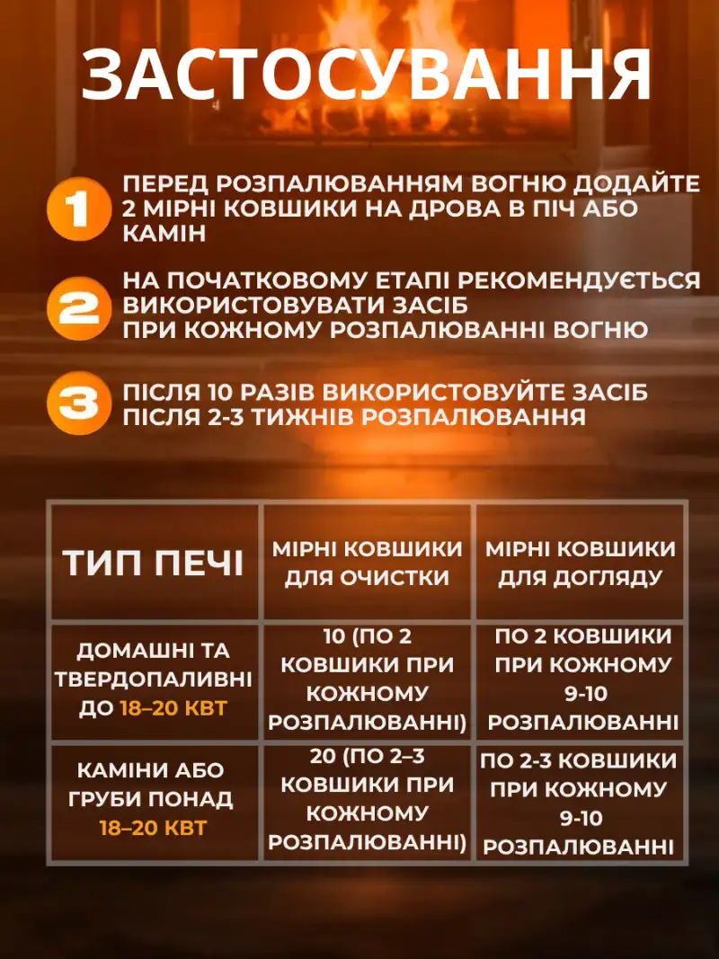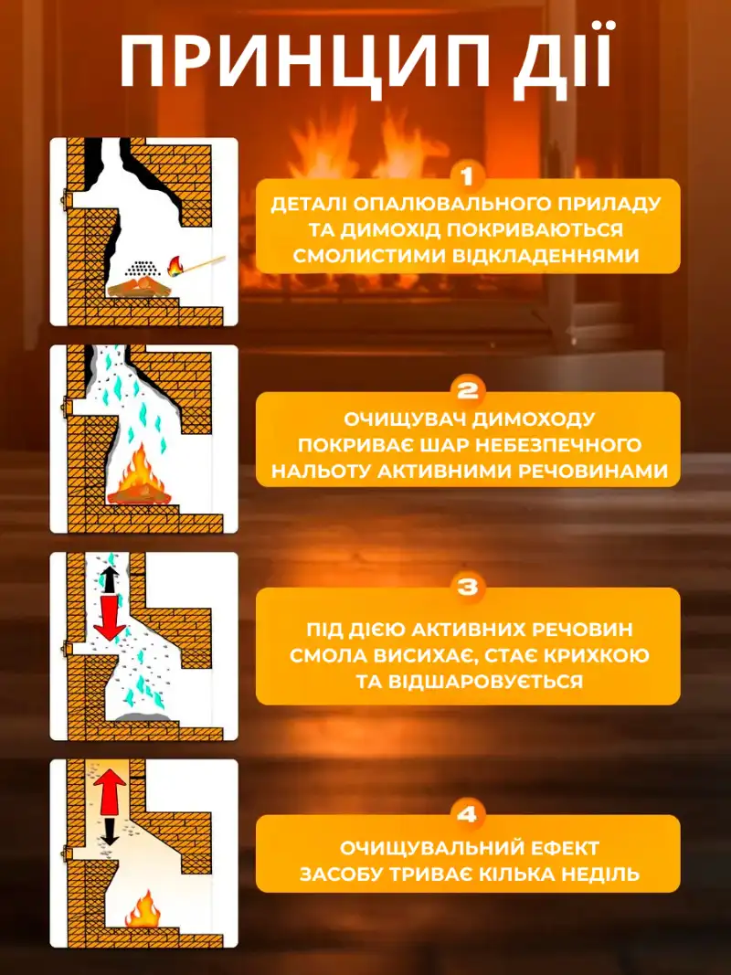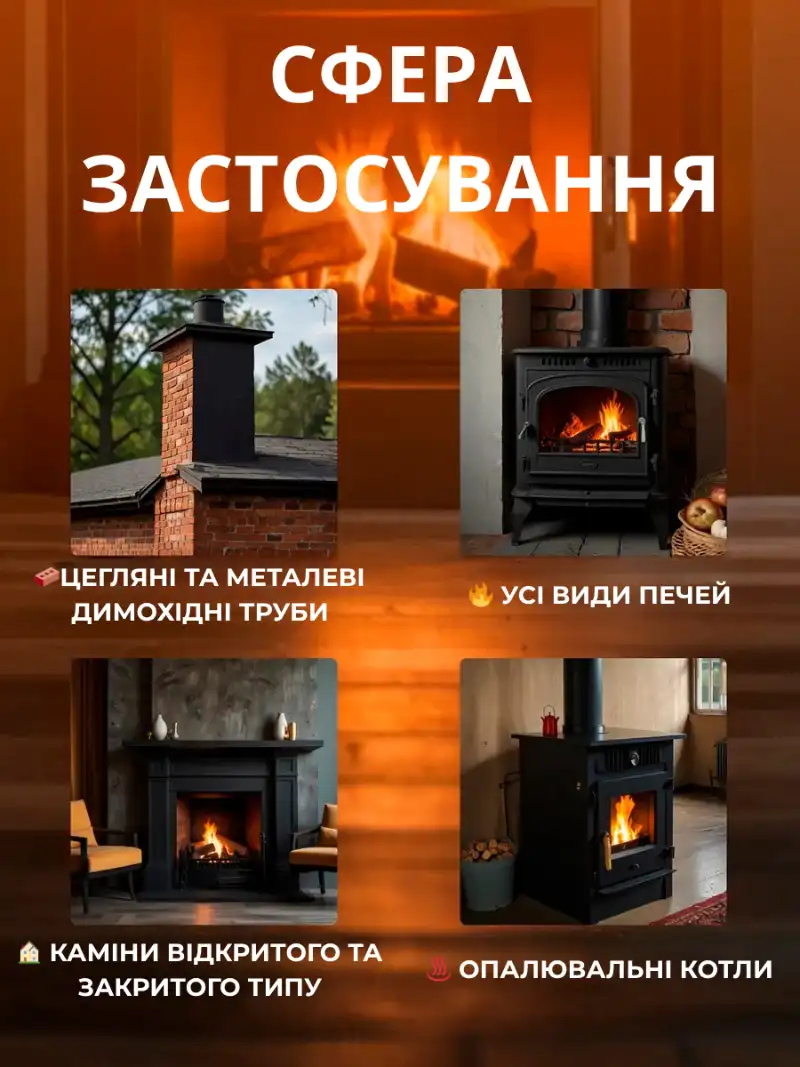 Побачте різницю вже після першого використання — димохід очищується сам, без інструментів і без майстрів.