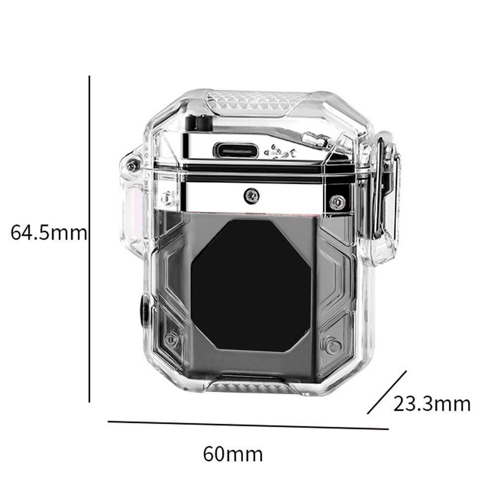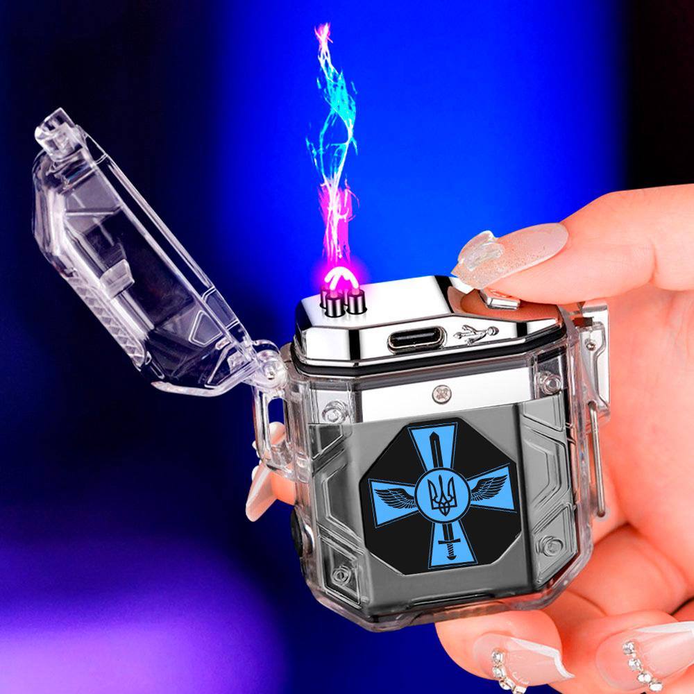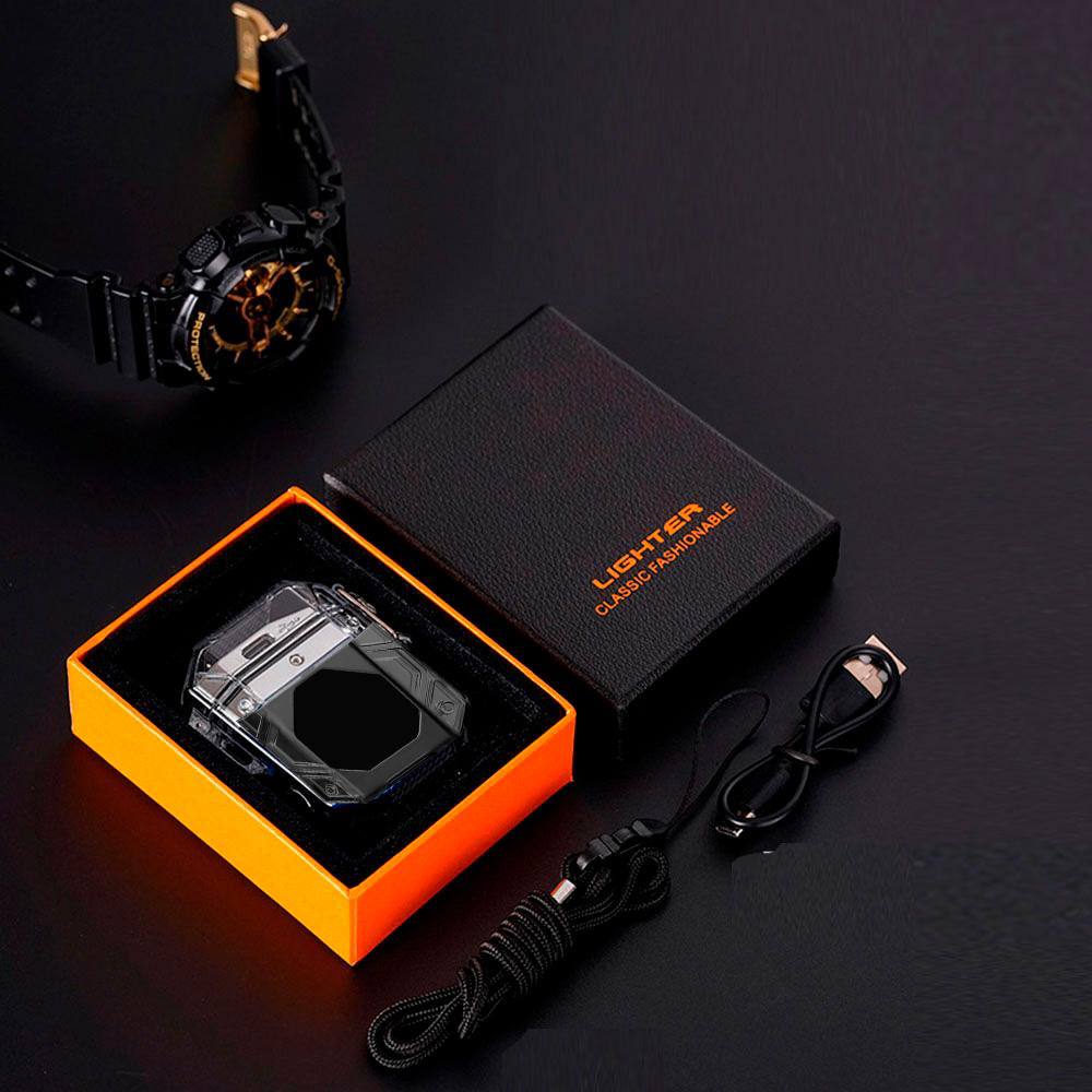 Прозорий корпус із підсвічуванням демонструє роботу електроніки, надаючи пристрою стильного та технологічного вигляду. Запальничка заряджається через USB, не потребує газу та має індикатор заряду, що робить її зручною у використанні та економічною в обслуговуванні